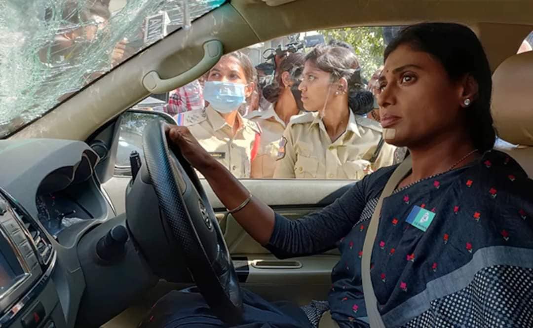 సొంత కారు స్టీరింగ్ చేతిలో పెట్టుకున్న వైఎస్ షర్మిల–వెంటాడే దృశ్యం కాదా!
