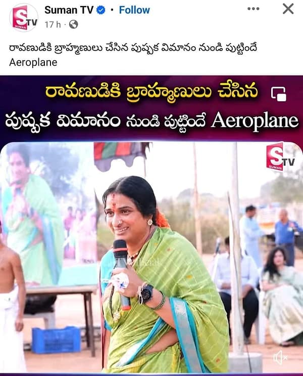… ఈ వీడియో ఏదో ఇంట్రెస్టింగ్గా అనిపించి యూట్యూబ్లో వెతుక్కుని చూశాను. ‘రావణుడి కోసం బ్రాహ్మణులు పుష్పక విమానం తయారు చేశారు’ అనే మాట కొంపెల్ల మాధవి గారు వాడలేదు. అది Thumb Nail పైత్యం. “రావణుడు ఎక్కి తిరిగే పుష్పకవిమానాన్ని ఒక వేదపండితుడు, బ్రాహ్మణుడు తయారు చేశాడు” అని ఆమె అన్నారు. బేసిగ్గా పుష్పక విమానం తయారు చేసింది విశ్వకర్మ. దాన్ని ఆయన బ్రహ్మకు ఇస్తే, తపస్సుతో ఆయనను మెప్పించి కుబేరుడు దాన్ని పొందాడని పురాణగాథ. ఆ తర్వాత దాన్ని రావణుడు బలవంతంగా లాక్కున్నాడని రాశారు. సరే! తయారు చేసింది విశ్వకర్మ అనేది ఫిక్స్.(ఈ విశ్వకర్మ బ్రాహ్మణుడో, కాదో నాకు క్లారిటీ లేదు. ఎవరికి గొప్పతనం ఉంటే వాళ్లని బ్రాహ్మణులుగా మార్చి పురాణాలు రాసే ఆచారం మనకుంది కదా!)