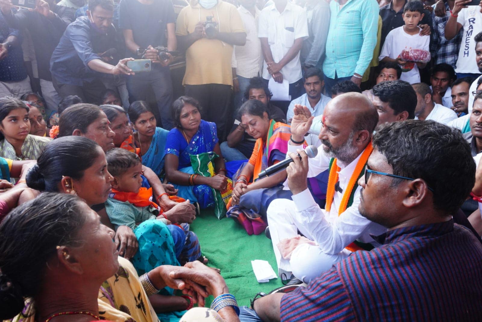 ఇక పాదయాత్రలో భాగంగా కోరుట్ల నియోజకవర్గంలోని మోహన్ రావు పేటలో గ్రామస్తులతో సంజయ్ రచ్చబండ కార్యక్రమం నిర్వహించారు. ఈ సందర్భంగా కొంతమంది స్థానిక గ్రామస్తులు తమ సమస్యలను సంజయ్ తో ఏకరవు పెట్టారు. ‘‘తమకు పెన్షన్లు రావడం లేదని.. ఇండ్లు లేవని..గుడిసెల్లో పండుకుంటే పాములు, తేళ్లు కుడుతున్నాయని.. మమ్మల్ని ఆదుకోవాలని’’ ఓ ముసలవ్వ ఆవేదన వ్యక్తం చేసింది. తన భూమిని బలవంతంగా లాక్కున్నారని.. పోలీస్ స్టేషన్లో తిరిగినా…  న్యాయం జరగలేదని..ఎలాగైనాఆదుకోవాలిని ” ఓ బాధితురాలు వాపోయింది. అటు గల్ఫ్ వలసవెళ్లిన బాధిత కుటుంబ యువతి..  తన తండ్రి గల్ఫ్ లో చనిపోయారని.. ఇప్పటివరకు మృతదేహాన్ని ఇక్కడికి తీసుకురాలేదని..  చాలా పేదోళ్ళమని.. మీరే న్యాయం చేయాలని ఆవేదన వ్యక్తం చేసింది.