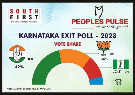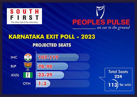 2024 సార్వత్రిక ఎన్నికలకు సిద్ధమవుతున్న జాతీయ పార్టీలు బీజేపీ, కాంగ్రెస్లకు ఈ ఎన్నికలు అగ్ని పరీక్షగా మారాయి. ఈ నేపథ్యంలో కర్ణాటక వ్యాప్తంగా క్షేత్ర స్థాయి రాజకీయ పరిస్థితులు, జనం నాడీ, ప్రజలు ఎదుర్కొంటున్న సమస్యల్ని కేంద్ర బిందువుగా చేసుకొని, పీపుల్స్ పల్స్ సంస్థ గత ఆరేడు నెలలుగా కర్ణాటక వ్యాప్తంగా పర్యటిస్తూ ‘సౌత్ ఫస్ట్’ కోసం మూడు ప్రీపోల్ సర్వేలు నిర్వహించింది. డేటాను శాస్త్రీయ పద్ధతిలో అధ్యయనం చేసి, రాష్ట్రంలో ‘పొలిటికల్ ట్రెండ్స్’ని ఎప్పటికప్పుడూ అంచనా వేస్తూ వచ్చింది. మొదటి ప్రీ పోల్ సర్వేను 2022 డిసెంబర్ 22 నుండి 31 వరకు నిర్వహించగా, రెండో ప్రీ పోల్ సర్వేను 2023 మార్చి 25 నుండి ఏప్రిల్ 10 వరకు చేపట్టింది. మూడో ప్రీపోల్ సర్వేను 2023 మే 1 నుండి మే 5 వరకు నిర్వహించింది. మొదటి ప్రీపోల్ చేపట్టినప్పుడు సంకీర్ణ ప్రభుత్వం ఏర్పడేలా సంకేతాలు కనిపించినా ఏప్రిల్ మొదటివారం నుంచి కాంగ్రెస్ గ్రాఫ్ నెమ్మదిగా పైకి పెరగడం మొదలైంది. అది కాస్త ఇప్పుడు కాంగ్రెస్ స్వల్ప ఆధిక్యతతో అధికారంలోకి వచ్చే అవకాశాలు ఉన్నట్లు పీపుల్స్ పల్స్ ఎగ్జిట్ పోల్ సర్వేలో వెల్లడయింది.