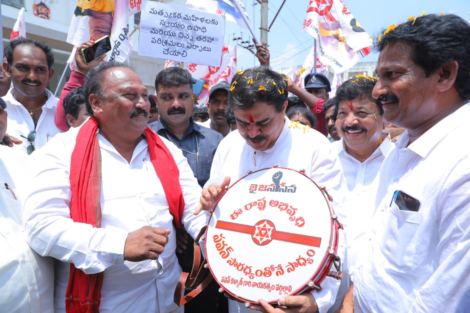 గతంలోనూ జనసేన పార్టీ ఆధ్వర్యంలో కాకినాడలోని సూర్యారావుపేట నుంచి మత్స్యకార అభ్యున్నతి యాత్ర చేపట్టిన సమయంలోనే మత్స్యకారుల వ్యధాభరితమైన జీవితాలు కనిపించాయన్నారు మనోహర్. అభ్యున్నతి యాత్ర నర్సాపురం వెళ్లే వరకూ మార్గమాధ్యంలో ఏ మత్స్యకార గ్రామానికి వెళ్లినా మత్స్యకారులంతా ముక్త కంఠంతో జగనన్న పోవాలి.. పవనన్న రావాలి అని బలంగా కోరుకోవడం కనిపించిందన్నారు. కచ్చితంగా మత్స్యకారుల కోసం పవన్ కళ్యాణ్ బలంగా నిలబడ్డారు… నిలబడతారని.. భవిష్యత్తులోనూ వారికి అండగా జనసేన పార్టీ ఉంటుందని స్పష్టం చేశారు. గత ఎన్నికల సమరం ప్రారంభ సమయంలోనూ గంగమ్మ తల్లికి మొక్కి, మత్స్యకారుల ఆశీస్సులు తీసుకొని కదనరంగంలోకి దిగిన జన సేనాని మత్స్యకారులను తన కుటుంబ సభ్యులుగా భావిస్తారన్నారు. కడలి పుత్రుల కుటుంబాలు ఆయనపై పెట్టుకున్న నమ్మకాన్ని నిలబెడతారని మనోహర్ విశ్వాసం వ్యక్తం చేశారు.