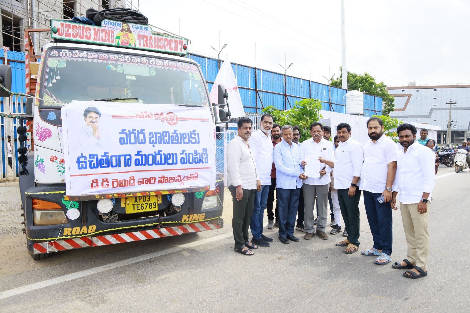Janasena:  భారీ వర్షాలు, వరదలతో తీవ్రంగా నష్టపోయిన ప్రజలను ఆదుకునేందుకు ముందుకు రావాలని ఉప ముఖ్యమంత్రి పవన్ కళ్యాణ్ పిలుపు మేరకు వివిధ ప్రజా సంఘాలు, పలువురు ప్రముఖులు, వ్యాపారస్తులు ముందుకొస్తున్నారు. మేము సైతం అంటూ మానవత్వం చాటుకుంటూ సేవా కార్యక్రమాలు చేపడుతున్నారు. విజయవాడ ప్రాంతానికి చెందిన డి.డి. రెమిడీస్ ప్రైవేట్ లిమిటెడ్ అనే సంస్థ వరద బాధితుల సహాయార్ధం రూ.40 లక్షలు విలువ చేసే ఎమర్జెన్సీ మందుల కిట్లు పంపిణీ చేసేందుకు ముందుకొచ్చింది.