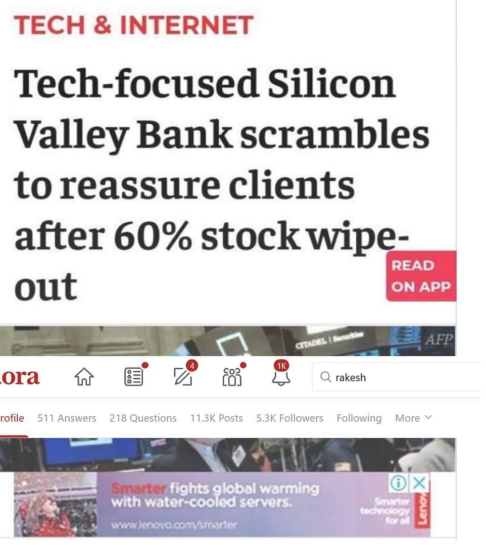 ఆదానీ గ్రూపు విషయంలో జరిగింది పుకారు మాత్రమే ! నిజానికి సిలికాన్ వాలీ బాంక్ కంటే 7 రేట్ల నిధులు ఆదానీ గ్రూపు దగ్గర ఉన్నాయి కానీ ఒక చిన్న పుకారు వల్ల షేర్ల ధరలు పడిపోయాయి ! కానీ నిలదొక్కుకోగలిగింది ఆదానీ గ్రూపు ! నేను బాంకుల దగ్గర తీసుకున్న అప్పులు కట్టలేను అని ఆదాని గ్రూపు చేతులు ఎత్తివేయలేదు ! కానీ SVB మాత్రం దివాళా తీసింది ఎందుకు ?