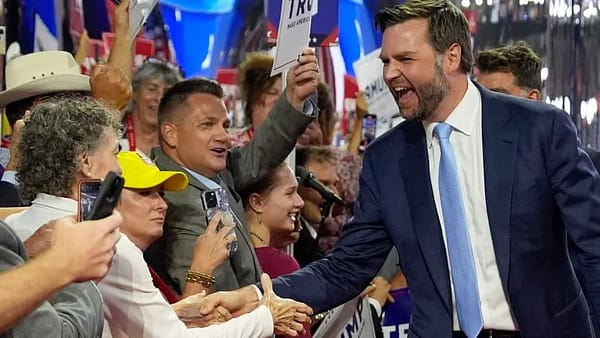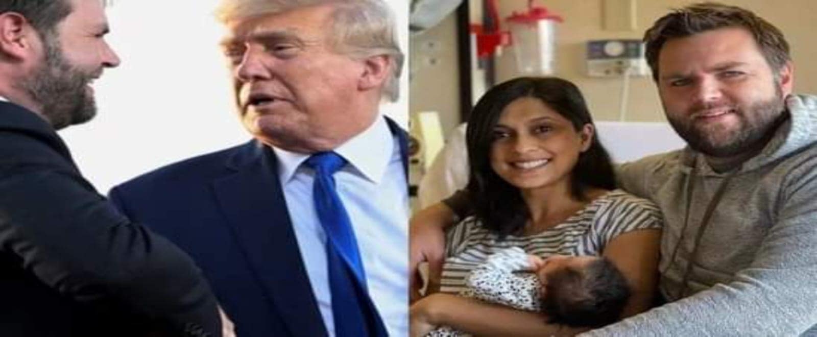 ( ఫోటోలు: 1. ట్రాంప్ రనింగ్ మేట్ గా నామినేట్ అయ్యాక్ అభిమానుల మధ్య జేడీ వాన్స్ 2. ఉష భర్త జేడీ వాన్స్ తో డొనాల్డ్ ట్రాంప్, బిడ్డతో భార్యాభర్తలు, 3. ఉషా చిలుకూరి, జేమ్స్ వాన్స్)