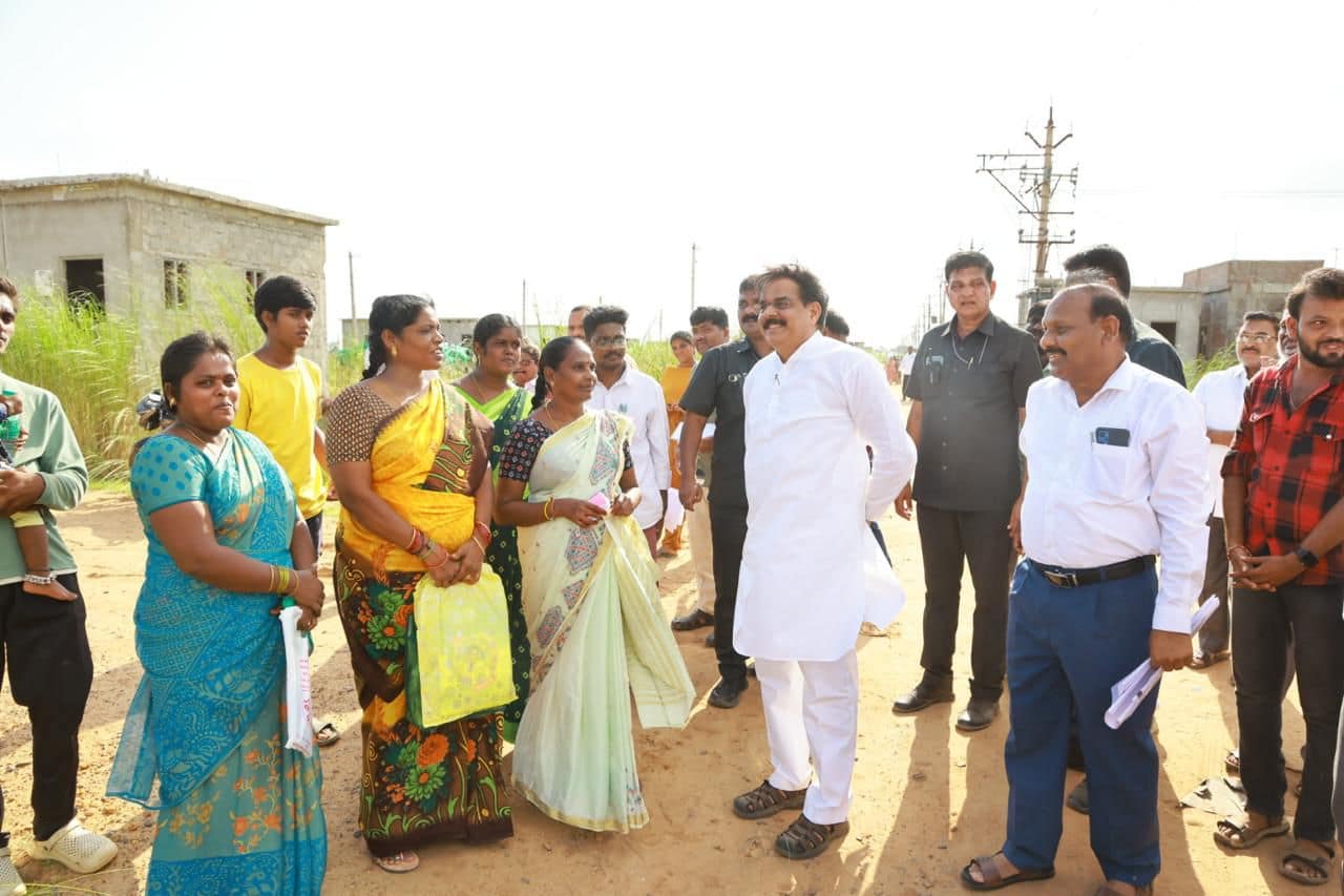 చిన్నపాటి వర్షానికి లే అవుట్లు చెరువులను తలపిస్తున్నాయని.. రోడ్లు, డ్రైనేజీ, తాగు నీరు, కరెంటు.. ఇలా ప్రతీది సమస్యేనని మనోహర్ అన్నారు. పట్టాలు ఇచ్చి నాలుగేళ్లు గడుస్తున్నా లబ్ధిదారులు తమకు మంజూరు చేసిన స్థలం ఎక్కడుందో కూడా తెలియని పరిస్థితి ఉందని.. మరికొంత మంది లబ్ధిదారులను ఇళ్లు నిర్మిస్తామని డబ్బులు తీసుకొని కాంట్రాక్టర్లు మోసం చేశారని మండిపడ్డారు. అసంపూర్తిగా ఉన్న నిర్మాణాలు అసాంఘిక కార్యకలాపాలకు అడ్డగా మారిపోతున్నాయని.. ముఖ్యంగా గంజాయి బ్యాచ్, మందు బాబులు రెచ్చిపోతున్నారని అన్నారు. సొంతింటి కోసం కలలు కన్న ప్రతి పేదవాడికి న్యాయం జరిగేలా కృషి చేస్తామని .. వచ్చే ఉగాది నాటికి ఇళ్ల నిర్మాణాలు పూర్తి చేసి లబ్ధిదారుల ముఖాల్లో సంతోషం నింపుతామని నాదెండ్ల ధీమా వ్యక్తంచేశారు.