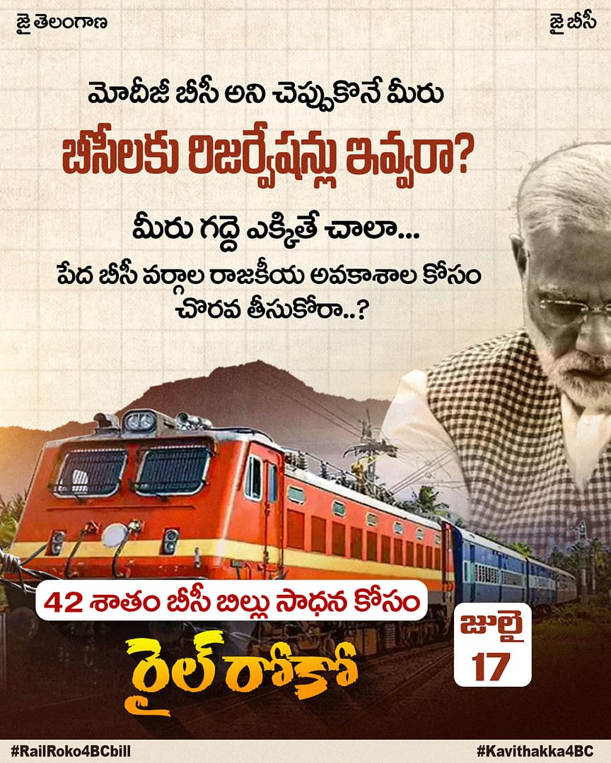 ఈ నెల 17న దేశవ్యాప్తంగా రైల్ రోకోకు పిలుపునిచ్చిన కవిత, ఢిల్లీ పర్యటన అనంతరం నాంపల్లి ఎగ్జిబిషన్ గ్రౌండ్ లో భారీ బహిరంగ సభ నిర్వహించాలని యోచిస్తున్నారు. జాతీయస్థాయిలో పలువురు నేతలు, ప్రజాప్రతినిధులు ఈ సభకు హాజరయ్యే అవకాశం ఉంది. ఈ సభతో బీసీ ఉద్యమాన్ని కవిత తీవ్రతరం చేయనున్నట్లు స్పష్టంగా అర్థమవుతోంది.