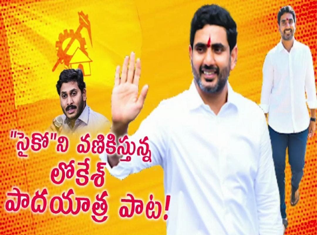 ఆంధ్రప్రదేశ్ లో తిరిగి అధికారం సొంతం చేసుకోవడమే లక్ష్యంగా తెలుగుదేశం పార్టీ తన అస్త్రాలకు పదును పెడుతోంది. యువగళం పాదయాత్ర ద్వారా లోకేశ్ ప్రజల్లోకి వెళుతున్నారు. దీనికి తోడుగా, వీలైనన్నీ ఎక్కువ దారుల్లో ప్రజల్లోకి చేరుకోవడానికి, జగన్ పాలనను ఎండగట్టడానికి ప్రయత్నాలు ఉధృతం చేసింది. ప్రస్తుతం తెలుగు రాష్ట్రాల్లో బాగా వినపడుతోన్న రవితేజ నటించిన ధమాకా సినిమాలోని జింతక పాటకు పేరడిగా లోకేశ్ పాదయాత్ర పాటను రూపొందించారు తెలుగుదేశం అభిమానులు. ’’జెండా పట్టబుద్ధాయితాంది… లోకేశో…. జై కొట్ట బుద్ధాయితాంది… లోకేశో…. ’’ అని మొదలయ్యే ఈ పాట చిన్నదే అయినా…. చిన్న పిల్లల నుంచి ముసలివాళ్ల వరకు సులభంగా నోటికి పాడేలా ఉండటంతో సోషల్ మీడియాలో విపరీతంగా షేర్ చేస్తూ వైరల్ చేశారు. పరోక్షంగా జగన్ ని టార్గెట్ చేసిన ఈ పాట, ఇప్పుడు జగన్ కోటలో కూడా ప్రకంపనలు సృష్టిస్తోందని, పాదయాత్ర తమకు అధికారం దూరం చేస్తుందనే భయం వైసీపీకి పట్టుకుందని నెటిజన్స్ కామెంట్స్ పెడుతున్నారు. ట్రెండింగ్ లో ఉన్న లోకేశ్ పాదయాత్ర పాట లిరిక్స్ మీకోసం…