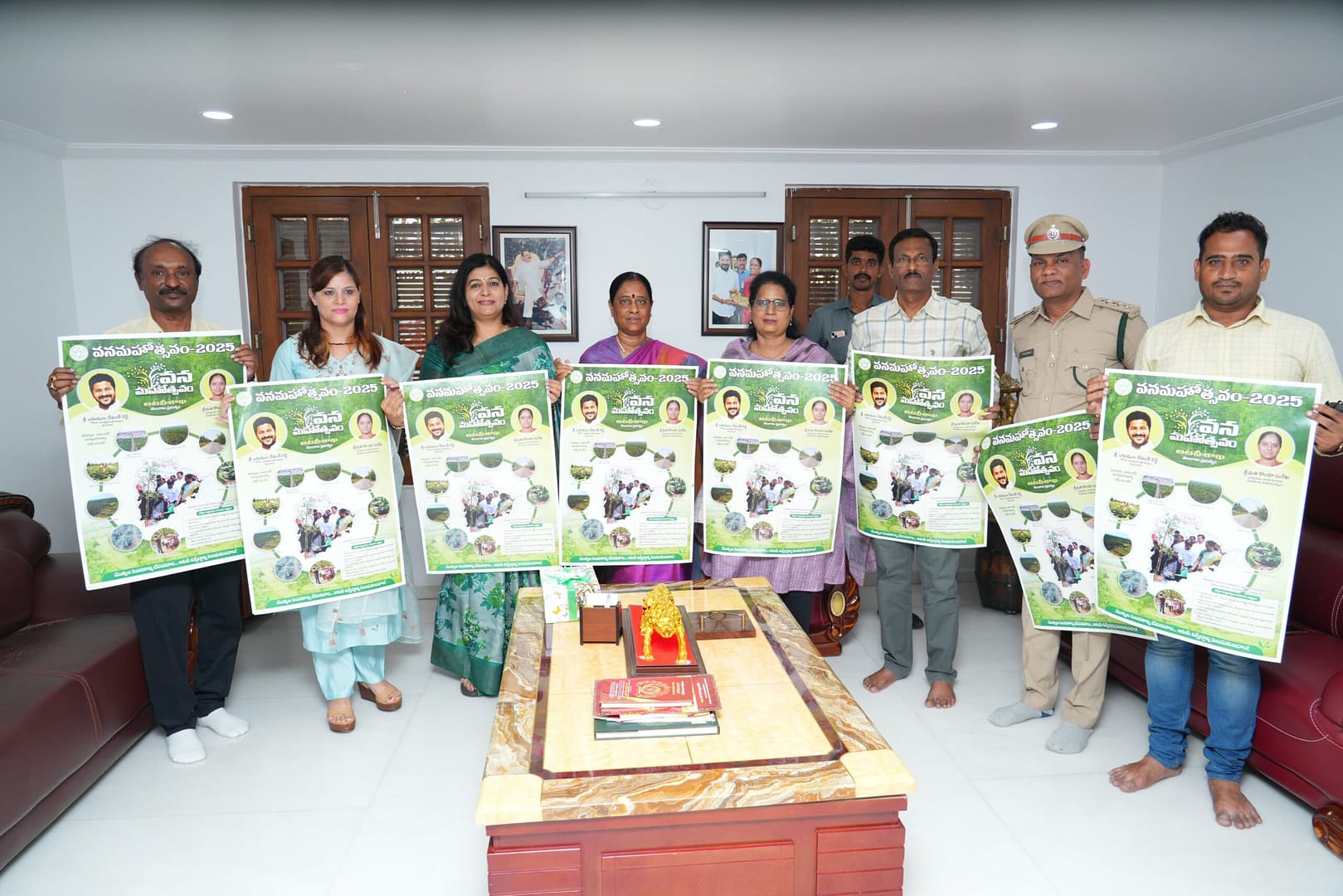 హైదరాబాద్ః తెలంగాణ రాష్ట్రవ్యాప్తంగా ప్రజా ప్రభుత్వం ప్రతిష్టాత్మకంగా చేపట్టదలిచిన వనమహోత్సవం కార్యక్రమాన్ని ఫారెస్టు డిపార్టుమెంటు అధికారులు మహోద్యమంలా తీసుకొని ముందుకు వెళ్ళాలని రాష్ట్ర అటవీ, పర్యావరణ, దేవాదాయ శాఖ మంత్రి శ్రీమతి కొండా సురేఖ చెప్పారు. వృక్షో రక్షిత రక్షితః నినాదాన్ని బలంగా ప్రజల్లోకి తీసుకెళ్ళాల్సిన అవసరం ఉందని ఆమె పునరుద్ఘాటించారు. వన మహోత్సవం-2025 పోస్టరు బుధవారం జూబ్లీహిల్స్ లోని తన నివాసంలో ఆవిష్కరించారు. పోస్టరు ఆవిష్కరణలో తెలంగాణ అటవీ ప్రధాన సంరక్షిణాధికారిణి (PCCF Hoff) డాక్టర్ సువర్ణ, సీసీఎఫ్ ప్రియాంక వర్గీస్, సోషల్ ఫారెస్టు రామలింగం తదితరులు పాల్గొన్నారు. ఈ సందర్భంగా మంత్రి సురేఖ మాట్లాడుతూ… ఈ ఏడాది తలపెట్టబోయే వనమహోత్సవ కార్యక్రమం వంద శాతం విజయవంతం అయ్యేలా చూడాలన్నారు. అన్నివర్గాల వారు ఈ బృహత్తర కార్యక్రమంలో భాగస్వామ్యం అయ్యేలా ప్రణాళికలు సిద్ధం చేసుకోవాలన్నారు. నాటిన ప్రతీ మొక్కను బతికించడానికి అవసరమైన చర్యలు తీసుకోవాలని తెలిపారు. నాటిన మొక్కలకు నీటి సదుపాయం విషయంలో ప్రత్యేక శ్రద్ధ తీసుకోవాలన్నారు. పండ్ల మొక్కలకు ఎక్కువ ప్రాధాన్యం ఇవ్వాలని సూచించారు. జిల్లాల్లో జూన్, జూలై, ఆగస్టు మాసాల్లో మొక్కలు నాటేందుకు ప్రణాళికతో ముందుకు వెళ్ళాలని సూచించారు. 2024 సంవత్సరం డిపార్టుమెంటువారీగా, డిస్టిక్ వారీగా రాష్ట్రవ్యాప్తంగా 20.02 కోట్ల మొక్కలు నాటాలని ప్రణాళికలు వేసుకోగా… 19.04 కోట్లు నాటినట్టు మంత్రి సురేఖ గుర్తు చేశారు. 95 శాతం మేరకు అంచనాలు రీచ్ అయినట్టు వెల్లడించారు. ఈ సారి 100 శాతం మనం పెట్టుకున్న టార్గెట్ రీచ్ కావాలని దిశానిర్దేశం చేశారు. ప్రతి గ్రామంలో వన నర్సరీల ద్వారా మొక్కలు పెంచి అదే గ్రామంలో నాటించడానికి ఏర్పాట్లు చేయాలని సూచించారు. గతంలో ఎదురైన అనుభవాలు, తప్పిదాలు పునరావృత్తం కాకుండా అవసరమైన జాగ్రత్తలను అధికారులు తీసుకోవాలన్నారు. ప్రతీ ఇంటికి మొక్కలు ఇచ్చి నాటేందుకు ప్రోత్సహించాలని చెప్పారు. ప్రజలు అడిగిన మొక్కలను అందజేయడానికి అధికారులు సిద్దంగా ఉండాలన్నారు. ఇండ్లలో ప్రధానంగా పెంచే గులాబీ, మందార, సీతాఫలం, జామ, ఉసిరి, అల్ల నేరేడు, మునగ, కానుగ, తులసి, ఈత మొక్కలతో పాటు పలు ఔషద మొక్కలు, పూల మొక్కలను సిద్ధం చేయాలని ఆదేశించారు. పూల మొక్కలను ప్రభుత్వ స్థలాలు, రహదారులకు ఇరువైపులా, పొలం, చెరువు గట్లు, ప్రభుత్వ కార్యాలయాలు, ప్రైవేటు సంస్థలు, పరిశ్రమలు, కమ్యూనిటీ కేంద్రాలు, వైద్య శాలలు, అంగన్వాడీ కేంద్రాలు, ప్రభుత్వ, ప్రైవేటు పాఠశాలలు, కళాశాలల ఆవరణల్లో నాటేందుకు ప్రణాళిక రూపొందించాలని మంత్రి సురేఖ ఆదేశించారు. గతం కంటే ఈసారి మాన్ సూన్ ముందే వచ్చిందని… ఈ నేపథ్యంలో అందరూ సన