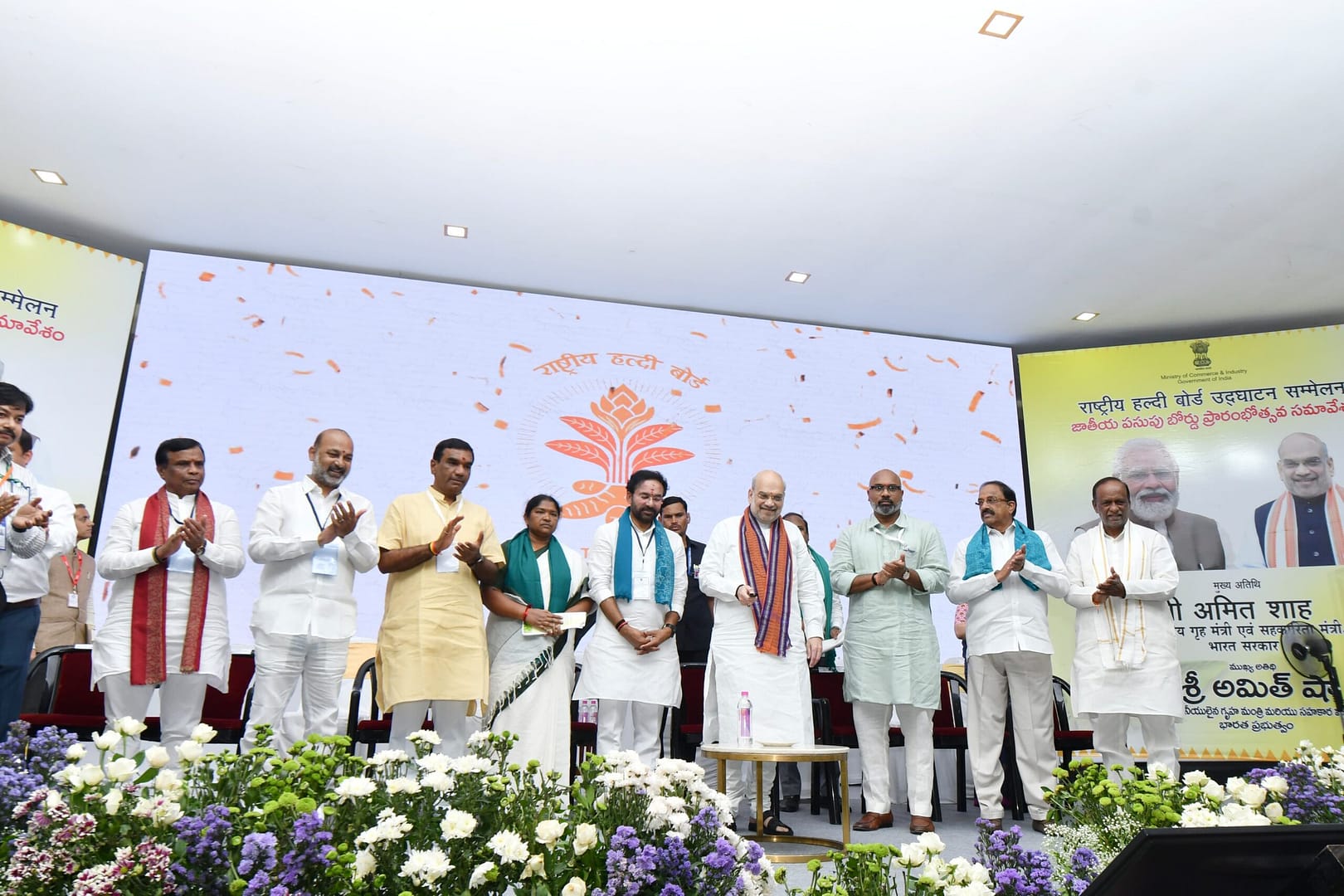 నిజామాబాద్ జిల్లా వాళ్లు గొప్పోళ్లు. మీరు కొట్లాడి సాధించుకున్నరు. మీరంతా లేచి అమిత్ షాకు ధన్యవాదాలు తెలపాలని కోరుతూ చప్పట్లు కొట్టండి(అందరూ లేచి నిలబడి చప్పట్లు కొట్టారు). ఇందరూ రైతులు హీరోలు. మీరు చేసిన ఉద్యమాలు మామూలు కాదు. అరవింద్ ను అంతా పసుపు అరవింద్ అంటున్నారు.