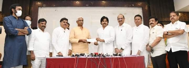 అయోధ్య రామమందిరం నిర్మాణానికి జనసేన అధ్యక్షులు శ్రీ పవన్ కళ్యాణ్ గారు రూ. 30 లక్షలు విరాళంగా ఇచ్చారు. ఈ మేరకు తిరుపతి లో రాష్ట్ర ఆర్.ఎస్.ఎస్. ముఖ్యులు శ్రీ భరత్ జీ గారిని కలిసి చెక్కును అందజేశారు. అతనితో పాటు వ్యక్తిగత సిబ్బంది సైతం ఆలయానికి విరాళమిచ్చారు( రూ. 11000) . ఈ కార్యక్రమంలో మాజీ మంత్రి బీజేపీ నాయకులు డాక్టర్ కామినేని శ్రీనివాస్ తో పాటు తదితరులు పాల్గొన్నారు.