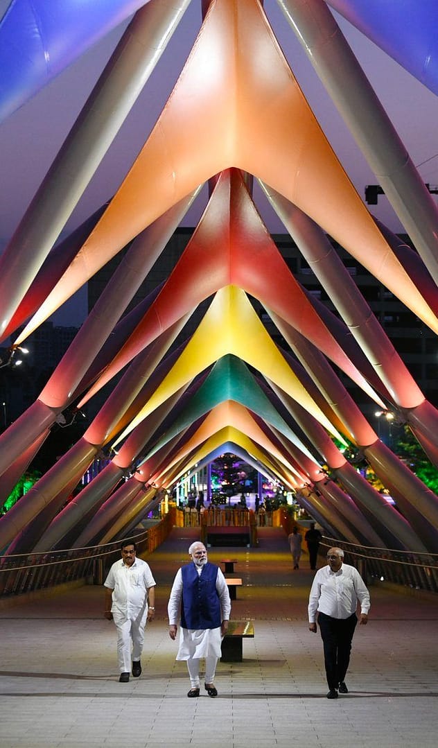 అటల్ బ్రిడ్జి ఓపెనింగ్ కార్యక్రమంలో భాగంగా గుజరాత్ ముఖ్యమంత్రి భూపేంద్ర పటేల్, రాష్ట్ర బిజెపి చీఫ్ సిఆర్ పాటిల్లతో కలిసి ప్రధాని వంతెనపై షికారు చేసి ప్రజలకు అభివాదం చేశారు.