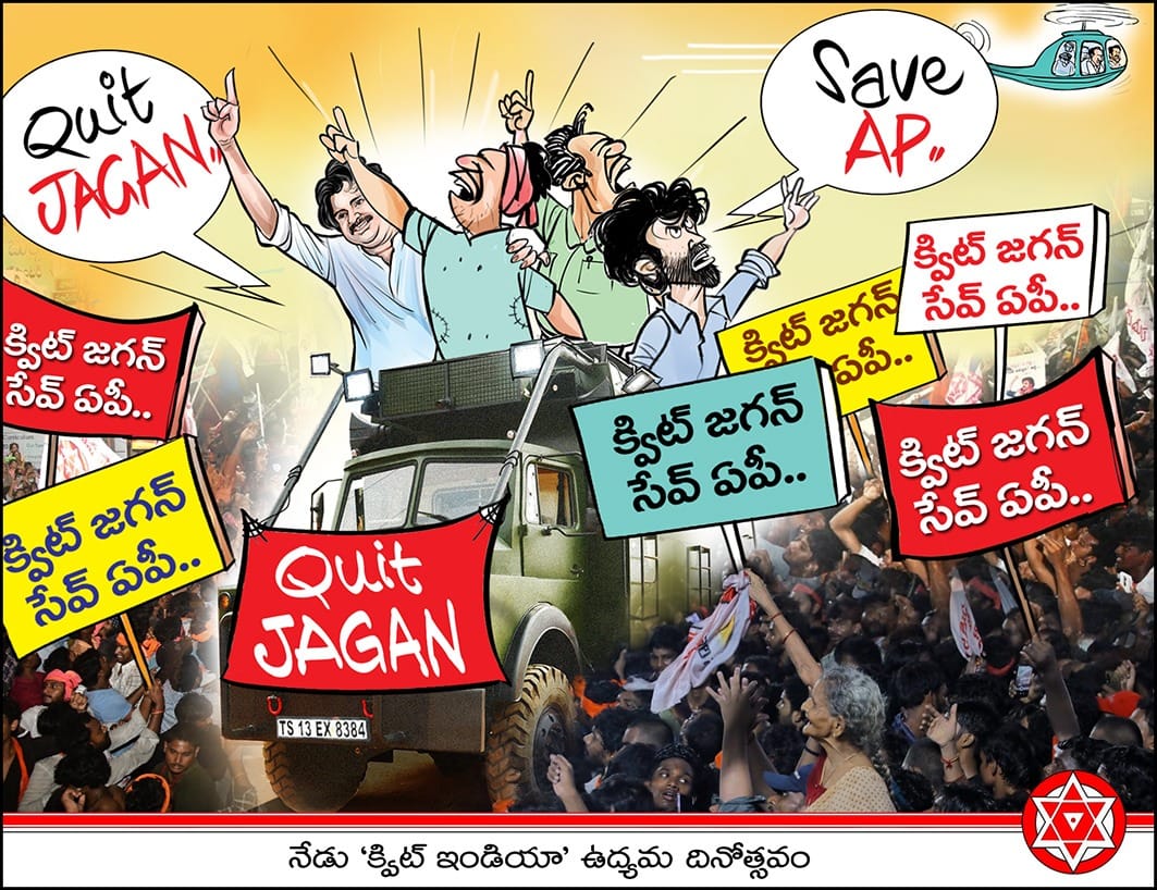 Janasena: క్విట్ ఇండియా ఉద్యమ దినోత్సవం నేటితో 81 ఏళ్లు పూర్తి చేసుకుంది. ఈసందర్భంగా జనసేన ఏపి ప్రభుత్వంపై సెటైరికల్ కార్టూన్ రూపొందించింది. క్విట్ జగన్ ఏపి క్యాప్షన్ తో రూపొందించిన కార్టూన్ కు సోషల్ మీడియాలో హాట్ టాపిక్ గా మారింది. దీన్ని క్యాష్ చేసుకుని జనసైనికులు కామెంట్ల తో రెచ్చిపోతున్నారు.