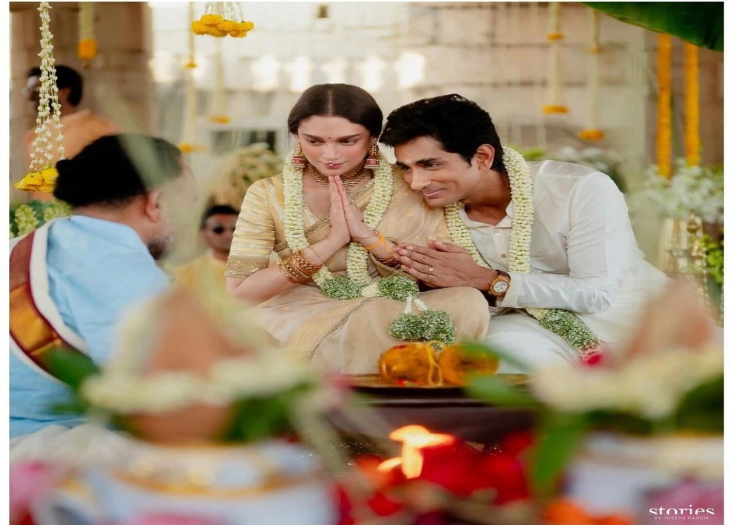 SiddharthAditiRao: హీరో సిద్దార్థ్, హీరోయిన్ అదితి రావు హైదరి మూడు ముళ్ల బంధంతో ఒక్కటయ్యారు. గత కొద్ది రోజులుగా వీరిద్దరూ లివింగ్ రిలేషన్ షిప్ లో సంగతి తెలిసిందే. తాజాగా వీరి పెళ్లి వేడుక వనపర్తి జిల్లా శ్రీరంగాపురంలోని రంగనాయకస్వామి ఆలయంలో కుటుంబ సభ్యులు, బంధువుల మధ్య ఘనంగా జరిగింది.