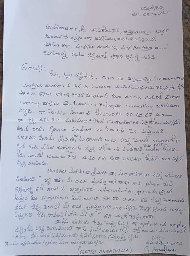 According to the aggrieved parties, a village secretariat employee was arbitrarily transferred merely on the suspicion of being a supporter of the YSR Congress Party (YSRCP). The situation escalated further when the victim’s husband alleged that his wife, an Auxiliary Nurse Midwife (ANM) posted at the Kuppam secretariat, was also forcibly transferred to a remote location without any valid reason — again, allegedly due to suspicions about her political affiliations.