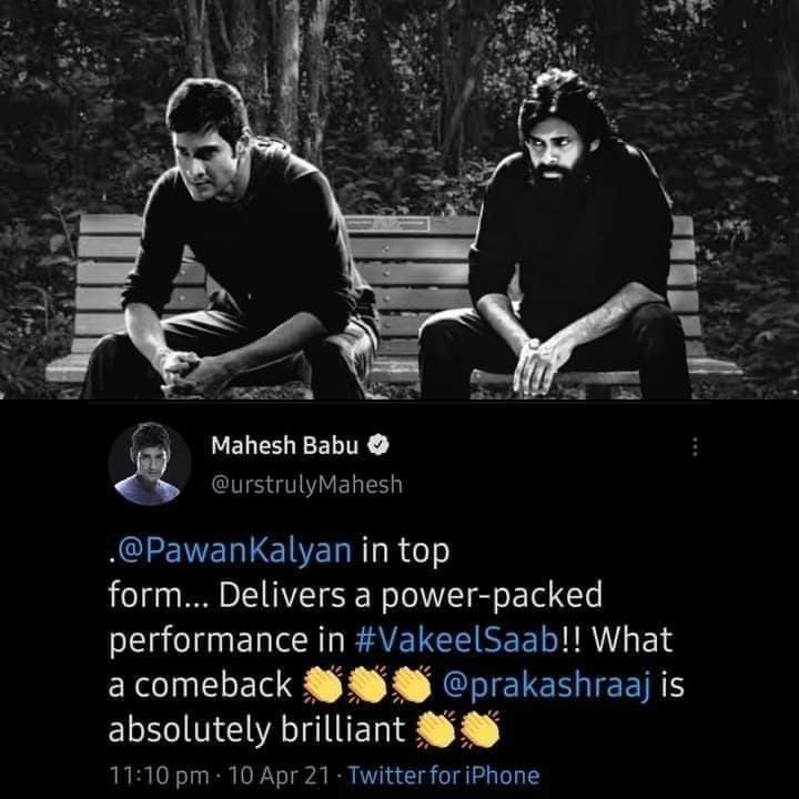 ‘వకీల్ సాబ్’ చిత్ర బృందంపై సూపర్ స్టార్ మహేష్బాబు ప్రశంసంల వర్షం కురిపించారు. ఈ మేరకు ఆయన ట్విట్టర్ వేదికగా స్పందించారు. మూడేళ్ల తర్వాత పవన్ వకీల్సాబ్ చిత్రంతో పవర్పుల్ కమ్బ్యాక్ ఇచ్చారన్నారు. ప్రకాశ్ రాజ్ నటన అద్బుతమని కొనియాడారు. అంజలి, నివేద, అనన్యలు హృదయాన్ని హత్తుకునేలా నటించారన్నారు. తమన్ సంగీతం సినిమాకు మరో ఎసెట్గా నిలిచిందన్నారు. టీం మొత్తానికి శుభాకాంక్షలు అంటూ ట్వీట్ చేశారు. కాగా వేణు శ్రీరామ్ డైరెక్షన్లో తెరకెక్కిన ‘వకీల్ సాబ్’ చిత్రాన్ని వెంకటేశ్వర క్రియేషన్స్ పతాకంపై దిల్రాజ్ నిర్మించారు. శ్రుతిహాసన్ కథానాయిక. నివేదా థామస్, అంజలి, అనన్య, ప్రకాశ్రాజ్ కీలక పాత్రల్లో నటించారు. ఈ నెల 9న విడుదలైన ఈ చిత్రం హిట్ టాక్తో దూసుకుపోతుంది. చిత్రం విడుదల రోజు నుంచి పలువురు సినీ ప్రముఖులతో పాటు అభిమానులు సోషల్ మీడియా వేదికగా ‘వకీల్ సాబ్’ టీంకి అభినందనలు తెలియజేస్తున్నారు.