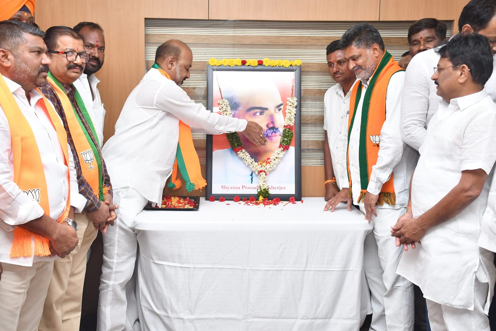 Karimnagar: భారతదేశ అసలు సిసలైన హీరో శ్యామాప్రసాద్ ముఖర్జీ అని కేంద్రహోంశాఖ సహాయ మంత్రి బండి సంజయ్ కుమార్ కొనియాడారు. ఒకే దేశం ఒకే జెండా ఒకే రాజ్యాంగం ఉండాలని పరితపించడమే కాకుండా 370 ఆర్ధికల్ రద్దు కోసం బలిదానమయ్యారని తెలిపారు. తన జీవిత సర్వస్వం సిద్ధాంతానికే అంకితం చేయడమే కాకుండా ఆ సిద్ధాంతం కోసం అధికార పదవులను కూడా త్రుణప్రాయంగా త్యజించిన మహనీయుడు శ్యామాప్రసాద్ ముఖర్జీ అని స్మరించుకున్నారు. ఈరోజు శ్యామాప్రసాద్ ముఖర్జీ వర్దంతి. ఈ సందర్భంగా బండి సంజయ్ కరీంనగర్ లోని ఎంపీ కార్యాలయంలో పార్టీ నాయకులతో కలిసి శ్యామాప్రసాద్ ముఖర్జీ చిత్రపటానికి పూలమాల వేసి ఘనంగా నివాళులు అర్పించారు. అంతకుముందు తన మాత్రుమూర్తితో కలిసి మొక్కను నాటారు. అనంతరం శ్యామాప్రసాద్ ముఖర్జీ దేశం కోసం చేసిన త్యాగాలను స్మరించుకుని మీడియాకు ఒక ప్రకటన విడుదల చేశారు.