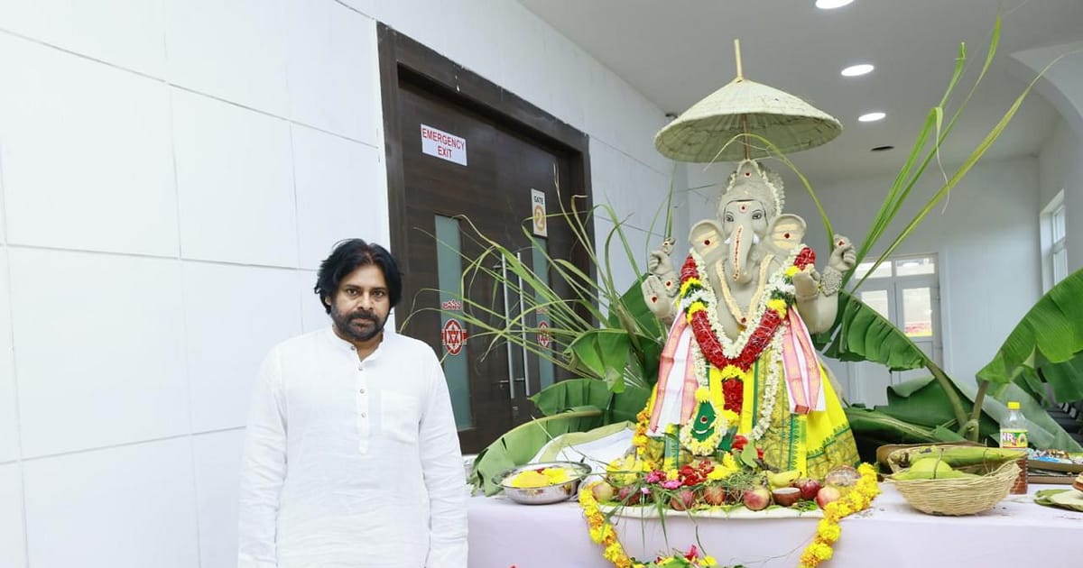 PawanKalyan: మంగళగిరిలోని జనసేన పార్టీ కేంద్ర కార్యాలయంలో వినాయక చవితి పూజలు సంప్రదాయబద్ధంగా నిర్వహించారు. మట్టి గణపతి ప్రతిమకు ఉప ముఖ్యమంత్రి పవన్ కళ్యాణ్ పూజలు చేశారు. విఘ్నాలు లేకుండా...