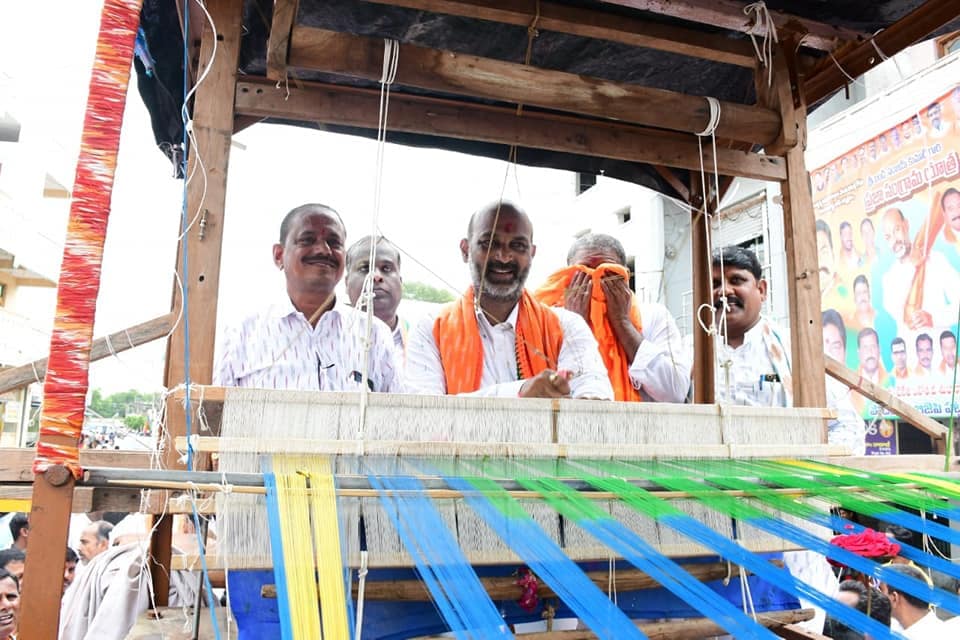 తెలంగాణ బీజేపీ అధ్యక్షుడు బండి సంజయ్ మూడో విడత ప్రజా సంగ్రామ యాత్ర యాదాద్రి భువనగిరి జిల్లాలో కొనసాగుతోంది. జాతీయ చేనేత దినోత్సవాన్ని పురస్కరించుకుని భూదాన్ పోచంపల్లిలో ఏర్పాటు చేసిన చేనేత కార్మికుల సమ్మేళనంలో బండి సంజయ్ పాల్గొన్నారు.టీఆర్ఎస్ ప్రభుత్వం చేనేత పరిశ్రమను నిర్వీర్యం చేసిందని సంజయ్ ఆరోపించారు.