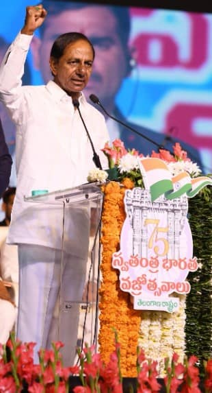 భారతదేశానికి స్వాతంత్ర్యం సిద్ధించి 75 ఏళ్లు పూర్తయినప్పటికీ అట్టడుగు ప్రజలకు స్వతంత్ర ఫలాలు సంపూర్ణంగా అందలేదన్నారు సీఎం కేసీఆర్. ఎల్బీ స్టేడియంలో నిర్వహించిన స్వతంత్ర భారత వజ్రోత్సవ ముగింపు వేడుకకు ముఖ్య అతిధిగా హాజరైన కేసీఆర్ పాల్గొని ప్రసంగించారు.ఎంతోమంది అమరవీరుల త్యాగఫలితంగా స్వాతంత్ర్యం సిద్ధించిందన.. ఆమహానీయుల గురించి భవిష్యత్ తరాలకు తెలియాల్సిన ఆవశ్యకత ఉందన్నారు.