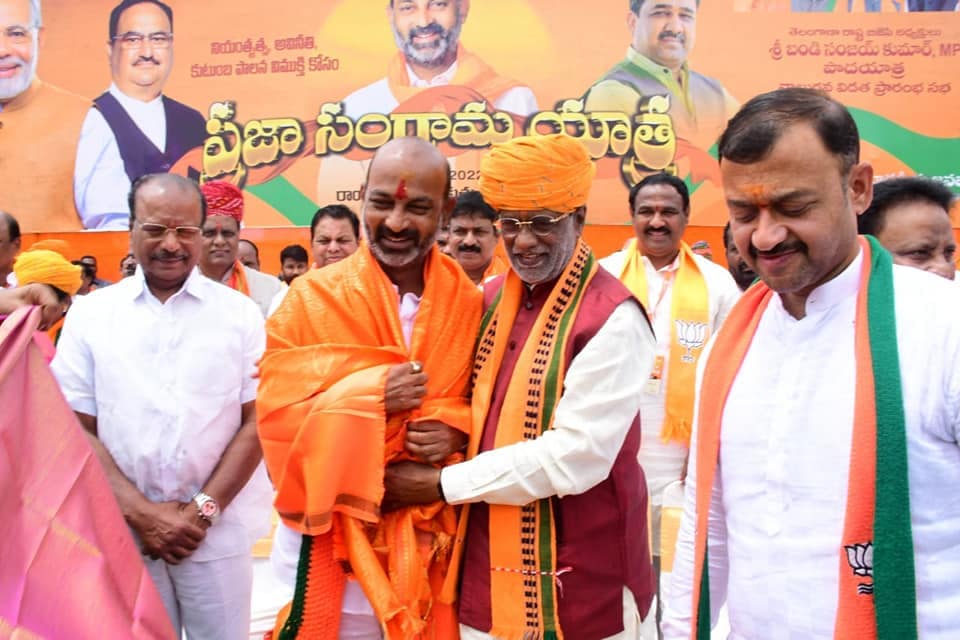 తెలంగాణ బీజేపీ అధ్యక్షుడు బండి సంజయ్ నాలుగో విడత ప్రజాసంగ్రామ యాత్రను అట్టహాసంగా ప్రారంభించిన బీజేపీ నేతలు.