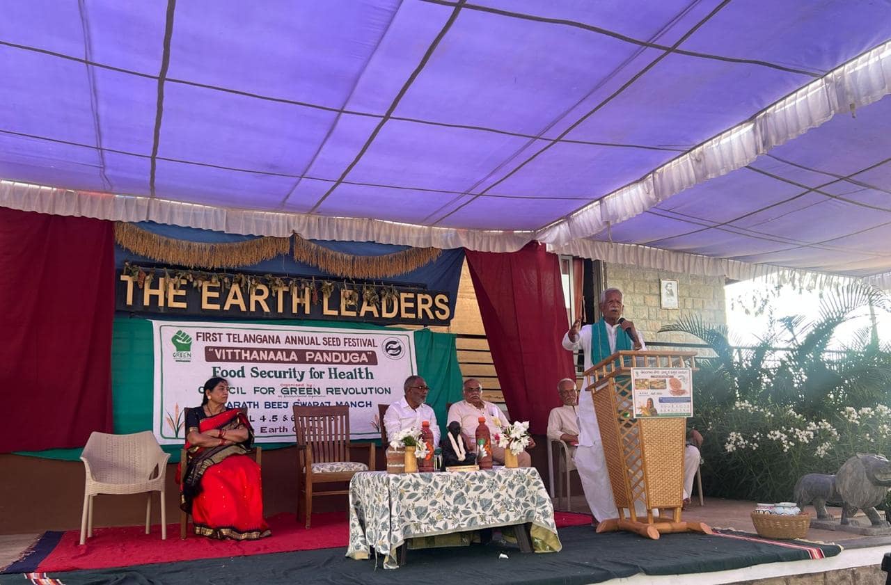 Khadtal: కల్తీ విత్తనాల నిర్మూలన, రైతుకే విత్తన హక్కు అన్న అంశాలకు చట్ట రూపం ఇచ్చి దానిని అమలుపరిచినప్పుడే దేశీ విత్తనాలను రక్షించుకోగలుగుతామని తెలంగాణ వ్యవసాయం రైతు సంక్షేమ కమిషన్ చైర్ పర్సన్ ఎం. కోదండ రెడ్డి అన్నారు.కౌన్సిల్ ఫర్ గ్రీన్ రెవల్యూషన్ సిజీఆర్ & భారత్ బీజ్ స్వరాజ్ మంచ్ ఆధ్వర్యంలో గత మూడు రోజులుగా కడ్తాల్ మండలం, అన్మాస్ పల్లిలో నిర్వహిస్తున్న విత్తన పండుగ ముగింపు కార్యక్రమంలో ఆయన పాల్గొని ప్రసంగించారు. 20 అంశాలతో ఐదు భాషల్లో డిక్లేరేషన్ ప్రకటించారని..2004లో ఈ అంశాలన్నిటితో ముసాయిదా తయారు చేశామని ఇప్పుడైనా దానిని ఆమోదింప చేసుకొని అమలుపరిచినట్లయితే రైతులకు మేలు జరుగుతుందని పేర్కొన్నారు. మన విత్తనాలను మనం రక్షించుకోగలుగుతామని ఏం. కోదండ రెడ్డి అన్నారు. అలాగే విత్తన సంరక్షణలో మహిళలకు ప్రాధాన్యత ఇవ్వాలని, కూరగాయలు ధాన్యాల విత్తనాలను భద్రపరిచి పంచుకునే విధానం తిరిగి పునర్జీవింప చేసుకోవాలని, మిశ్రమ పంటలతో ,పంట మార్పిడి విధానాలతో రైతులు వ్యవసాయం చేయాలని, ఇలాంటి అంశాలన్నీ ప్రభుత్వ దృష్టికి తీసుకురావడానికి రైతు కమిషన్ను తెలంగాణలో ఏర్పాటు చేసుకున్నామని వివరించారు.