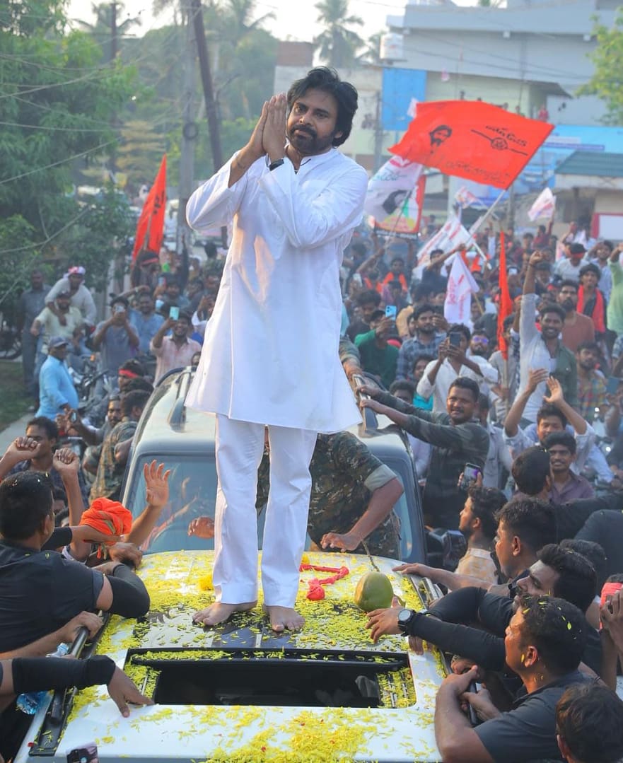 విపక్ష పార్టీలు రైతుల కోసం గొంత్తెత్తితేగానీ ప్రభుత్వంలో చలనం లేదని మండిపడ్డారు పవన్. క్షేత్రస్థాయిలో రైతు పరిస్థితిని విపక్షాలు చెబితే గానీ ధాన్యం కొనుగోలుకు ముందుకు రాలేదన్నారు. ఇప్పటికీ ధాన్యం సేకరణ అంతంత మాత్రంగానే జరుగుతోందని.. ఇప్పటివరకు గోతాలు ఇవ్వని అధికారులు.. మేము వస్తున్నాం అని తెలియగానే రాత్రికి రాత్రి గోతాలు ఇవ్వడం విచిత్రంగా ఉందన్నారు. ఇప్పటి వరకూ లేని గోనె సంచులు ఎక్కడి నుంచి వచ్చాయని.. కొనుగోళ్లు హడావుడిగా చేస్తున్నారని ఆగ్రహాం వ్యక్తం చేశారు. రైతు కన్నీరు పెట్టని రాజ్యం చూడాలి అన్నదే జనసేన లక్ష్యమని కుండ బద్ధలు కొట్టారు. అకాల వర్షాలకు నష్టపోయిన ప్రతి గింజ కొనుగోలు చేసే వరకు జనసేన పోరాడుతుందని.. రైతులకు అండగా నిలుస్తుందని పవన్ పేర్కొన్నారు.