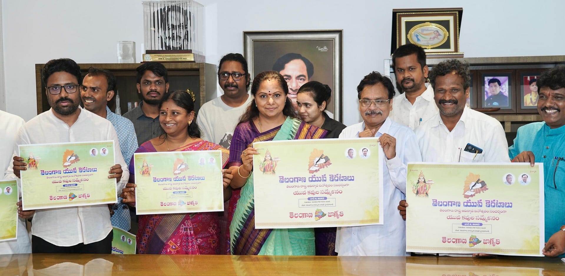 Kavitha: తెలంగాణ ఆవిర్భావ దినోత్సవం సందర్భంగా జూన్ 2వ తేదీన యువ కవుల సమ్మేళనం నిర్వహిస్తున్నట్లు తెలంగాణ జాగృతి ప్రకటించింది. తెలంగాణ సారస్వత పరిషత్ లో జరగనున్న ఈ సమ్మేళనానికి సంబంధించిన పోస్టర్ ను గురువారం నాడు తెలంగాణ జాగృతి అధ్యక్షురాలు, ఎమ్మెల్సీ కల్వకుంట్ల కవిత తన నివాసంలో ఆవిష్కరించారు.