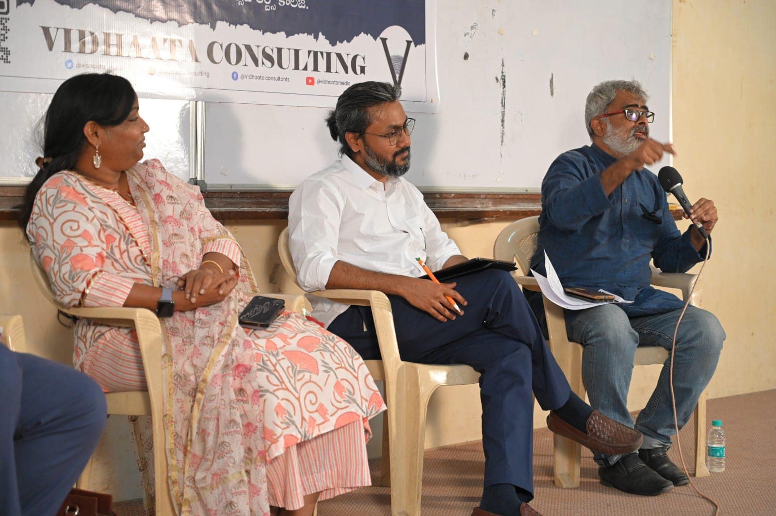 సీఎం లు అంటేఅది బ్రహ్మ పదార్థం కాదు. CBN, KCR, YS వీళ్లెవ్వరూ పుట్టుకతో రాలేదు.. పాలిటిక్స్ ఎంట్రి డిసైడ్ చేసుకొండి… రాజకీయాల్లో ఓట్లును ఎలా పొందాలనే ఈ జీ మెథడ్ డబ్బు… కానీ పని చేసే నాయకులకు ఎప్పుడు గెలిపించడానికి ప్రజలు సిద్దంగా ఉన్నారు. మీ అవసరాలు మీకే తెలుస్తాయి కాబట్టి యువత రాజకీయాల్లోకి రావాలని మధు గారు అభిప్రాయ పడ్డారు.కోట శ్రీనివాస్ మాట్లాడుతూ…ప్రజాస్వామ్యం ప్రమాదంలో పడ్డ ఈ సమయం లో ఇలాంటి కార్యక్రమాన్ని నిర్వహించడం చాలా మంచి నిర్ణయమన్నారు.క్యాపిటేషన్ ఫీజు పెంచడంతో సీఎం రాజీనామా చేపించిన చరిత్ర విద్యార్ధుల కు ఉన్నది.. ఒక మంచి సమాజం ఏర్పడాలంటే.. మంచి రాజకియాలు రావాలి . రాజకీయాల్లోకి రానంత కాలం నేరస్తులే ఏలుతారు . పదో తరగతి కూడా చదవో నోళ్లు చదువుకున్న వాళ్ల ను శాసిస్తున్నారు.76 ఏళ్ల స్వతంత్ర భారతంలో ఇంకా అసమానతలు ఉన్నాయన్నారు . మనకు మనం స్వీయ విమర్శ చేసుకోవాల్సిన అవసరం యువత పై ఉందన్నారు. ఒక నాయకుడి అవి నీతిని ప్రశ్నిస్తే…సోషల్ మీడియా వారియర్స్ గా ఉంటూ నాయకుల గురించి కొట్టుకుంటూ వారి జెండాలు మోస్తు యువత వారి మత్తులో ఉందన్నారు.విద్యార్ధులు రాజకీయాల్లోకి రావడం ఇష్టం లేకనే యూనివర్సిటీలో ఎన్నికలను నిషేదించారన్నారు.తెలంగాణలో జరిగిన ప్రతీ పరీక్షలో పేపర్ లీకేజీ కామన్ అని ఓ మంత్రి మాట్లాడుతున్నారు. వచ్చే ఎన్నికల్లో ఎవ్వరూ అధికారంలో ఉండాలన్నది 33 లక్షల నిరుద్యోగ యువత డిసైడ్ చేస్తుందని కోటా శ్రీనివాస్ అభిప్రాయ పడ్డారు. అనంతరం జరిగిన చర్చా వేదిక లో పాఠకులు అడిగిన పలు ప్రశ్నలకు వక్తలు సమాధానాలు ఇచ్చారు.ఈ కార్యక్రమంలో విధాత టీం పాల్గొన్నారు