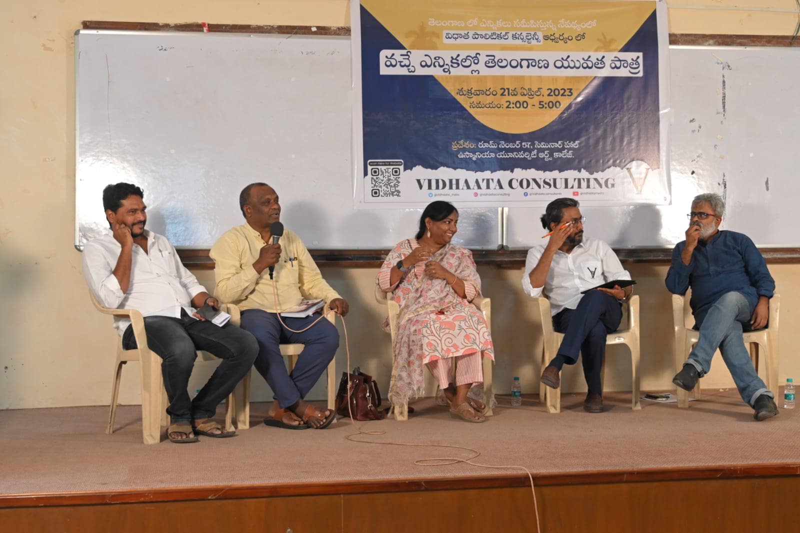 సీఎం లు అంటేఅది బ్రహ్మ పదార్థం కాదు. CBN, KCR, YS వీళ్లెవ్వరూ పుట్టుకతో రాలేదు.. పాలిటిక్స్ ఎంట్రి డిసైడ్ చేసుకొండి… రాజకీయాల్లో ఓట్లును ఎలా పొందాలనే ఈ జీ మెథడ్ డబ్బు… కానీ పని చేసే నాయకులకు ఎప్పుడు గెలిపించడానికి ప్రజలు సిద్దంగా ఉన్నారు. మీ అవసరాలు మీకే తెలుస్తాయి కాబట్టి యువత రాజకీయాల్లోకి రావాలని మధు గారు అభిప్రాయ పడ్డారు.కోట శ్రీనివాస్ మాట్లాడుతూ…ప్రజాస్వామ్యం ప్రమాదంలో పడ్డ ఈ సమయం లో ఇలాంటి కార్యక్రమాన్ని నిర్వహించడం చాలా మంచి నిర్ణయమన్నారు.క్యాపిటేషన్ ఫీజు పెంచడంతో సీఎం రాజీనామా చేపించిన చరిత్ర విద్యార్ధుల కు ఉన్నది.. ఒక మంచి సమాజం ఏర్పడాలంటే.. మంచి రాజకియాలు రావాలి . రాజకీయాల్లోకి రానంత కాలం నేరస్తులే ఏలుతారు . పదో తరగతి కూడా చదవో నోళ్లు చదువుకున్న వాళ్ల ను శాసిస్తున్నారు.76 ఏళ్ల స్వతంత్ర భారతంలో ఇంకా అసమానతలు ఉన్నాయన్నారు . మనకు మనం స్వీయ విమర్శ చేసుకోవాల్సిన అవసరం యువత పై ఉందన్నారు. ఒక నాయకుడి అవి నీతిని ప్రశ్నిస్తే…సోషల్ మీడియా వారియర్స్ గా ఉంటూ నాయకుల గురించి కొట్టుకుంటూ వారి జెండాలు మోస్తు యువత వారి మత్తులో ఉందన్నారు.విద్యార్ధులు రాజకీయాల్లోకి రావడం ఇష్టం లేకనే యూనివర్సిటీలో ఎన్నికలను నిషేదించారన్నారు.తెలంగాణలో జరిగిన ప్రతీ పరీక్షలో పేపర్ లీకేజీ కామన్ అని ఓ మంత్రి మాట్లాడుతున్నారు. వచ్చే ఎన్నికల్లో ఎవ్వరూ అధికారంలో ఉండాలన్నది 33 లక్షల నిరుద్యోగ యువత డిసైడ్ చేస్తుందని కోటా శ్రీనివాస్ అభిప్రాయ పడ్డారు. అనంతరం జరిగిన చర్చా వేదిక లో పాఠకులు అడిగిన పలు ప్రశ్నలకు వక్తలు సమాధానాలు ఇచ్చారు.ఈ కార్యక్రమంలో విధాత టీం పాల్గొన్నారు