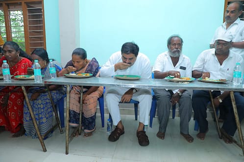 * భవన నిర్మాణ కార్మికులతో సహ పంక్తి భోజనం